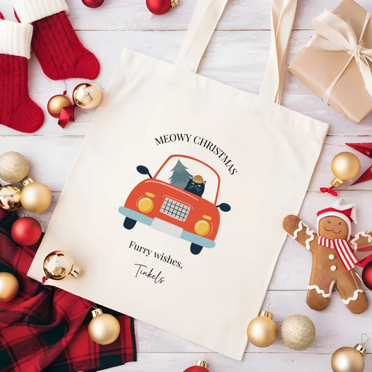 Meowy Christmas - Gepersonaliseerde canvas tas